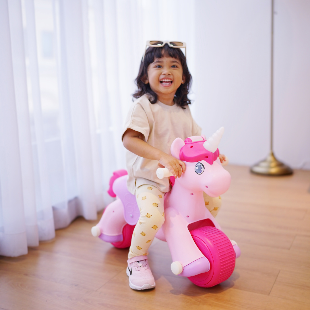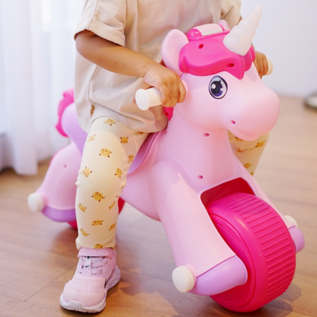 This foot-to-floor balance scooter is designed for young children to develop their balance and coordination skills while enjoying outdoor play. Its fun unicorn design makes it appealing to kids, encouraging active and safe outdoor activities.