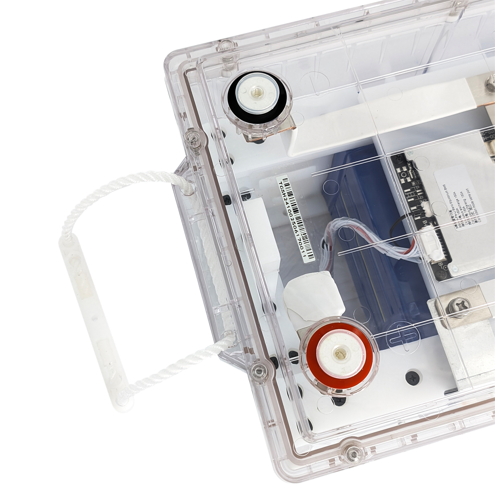 This high-voltage lithium battery offers reliable and efficient power for various applications. Designed with a clear case, it provides easy access to its internal components. Equipped with a built-in BMS, it ensures protection against overcharge, over-discharge, overheating, and short circuits. With a lifespan of up to 4,000 cycles, it delivers long-lasting performance and high energy density in a portable design.