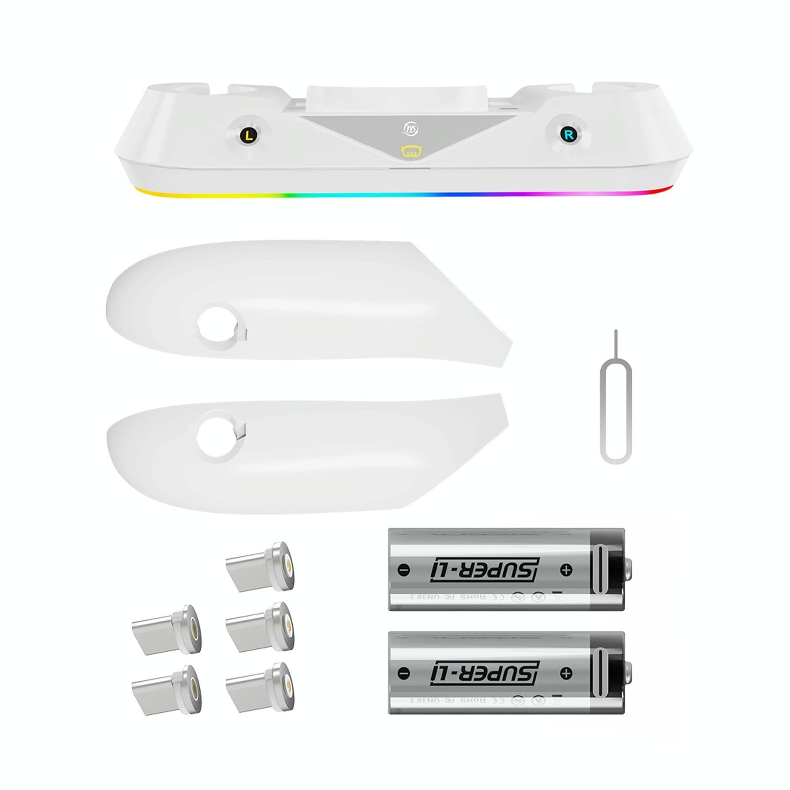 This VR game seat charging set features a magnetic suction base designed for the Meta Quest 3 glasses and handle. It provides a convenient charging solution while also stabilizing and displaying your VR controllers and headset, helping to keep your desktop organized. The set includes built-in LED indicators to show charging status and offers RGB lighting to enhance your gaming atmosphere. It is equipped with over-voltage, over-charging, over-current, and circuit protection to ensure safe usage. The battery capacity is 1800mAh, providing reliable power for your VR accessories.
