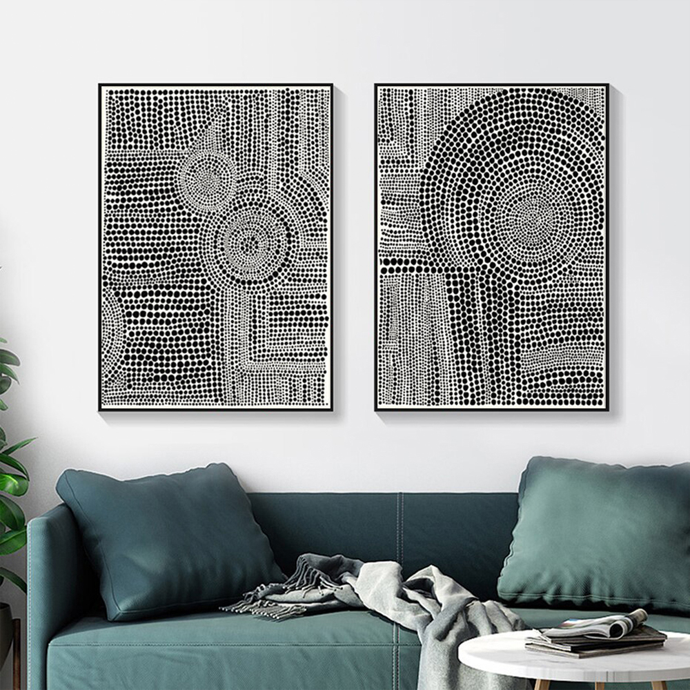 Wall Art 70cmx100cm Clustered Dots 2 Sets Black Frame Canvas