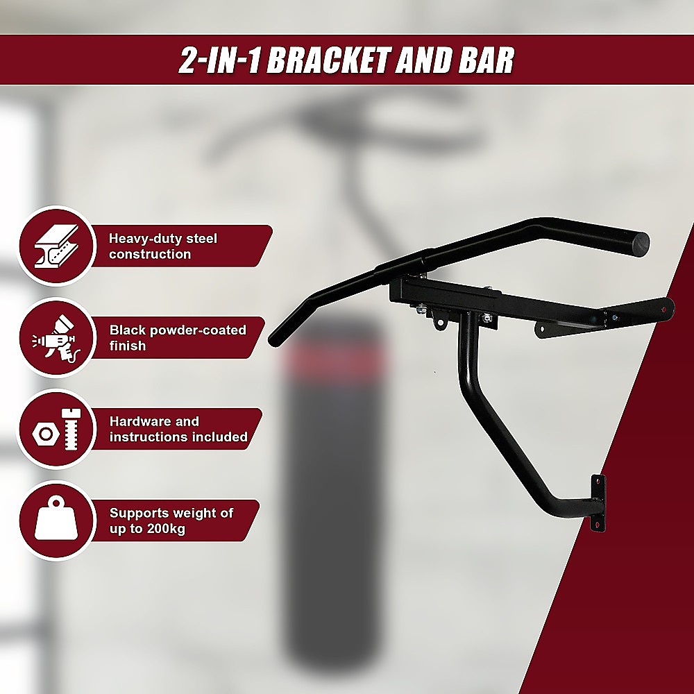The Wall Chin Up Pull Up Bar and Punching Bag Station is a versatile fitness equipment piece designed for strength training and cardio workouts. It can be installed on brick or stone surfaces and supports various exercises including chin-ups, pull-ups, leg raises, and more. Additionally, it provides a secure attachment point for punching bags and speed balls, making it suitable for a comprehensive workout routine.