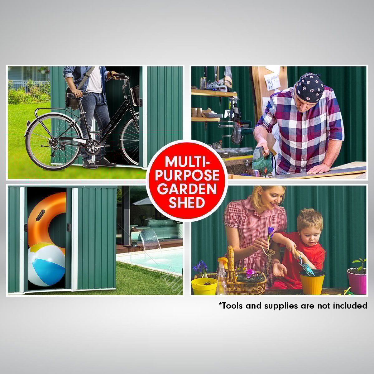 Wallaroo Garden Shed Flat 4ft x 6ft Outdoor Storage Shelter – Green