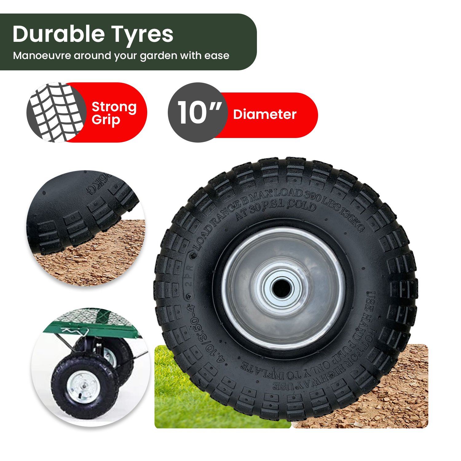 This heavy-duty garden trolley cart is designed to make landscaping and yard work more efficient. It features a large capacity and durable construction, suitable for transporting a variety of materials and large items around your home and garden. The cart is versatile with foldable sides and easy maneuverability, making it an essential tool for gardening, landscaping, and outdoor projects.