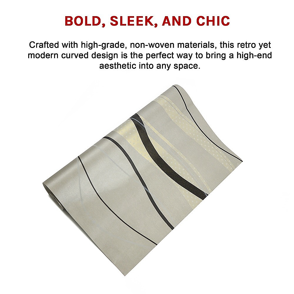 This wallpaper features a simple, modern curved design with a sleek and chic appearance. Made from high-quality non-woven materials, it offers durability, ease of cleaning, and a stylish aesthetic suitable for various interior spaces. Its calming curves and neutral color palette make it an excellent choice for creating a sophisticated and tranquil environment.