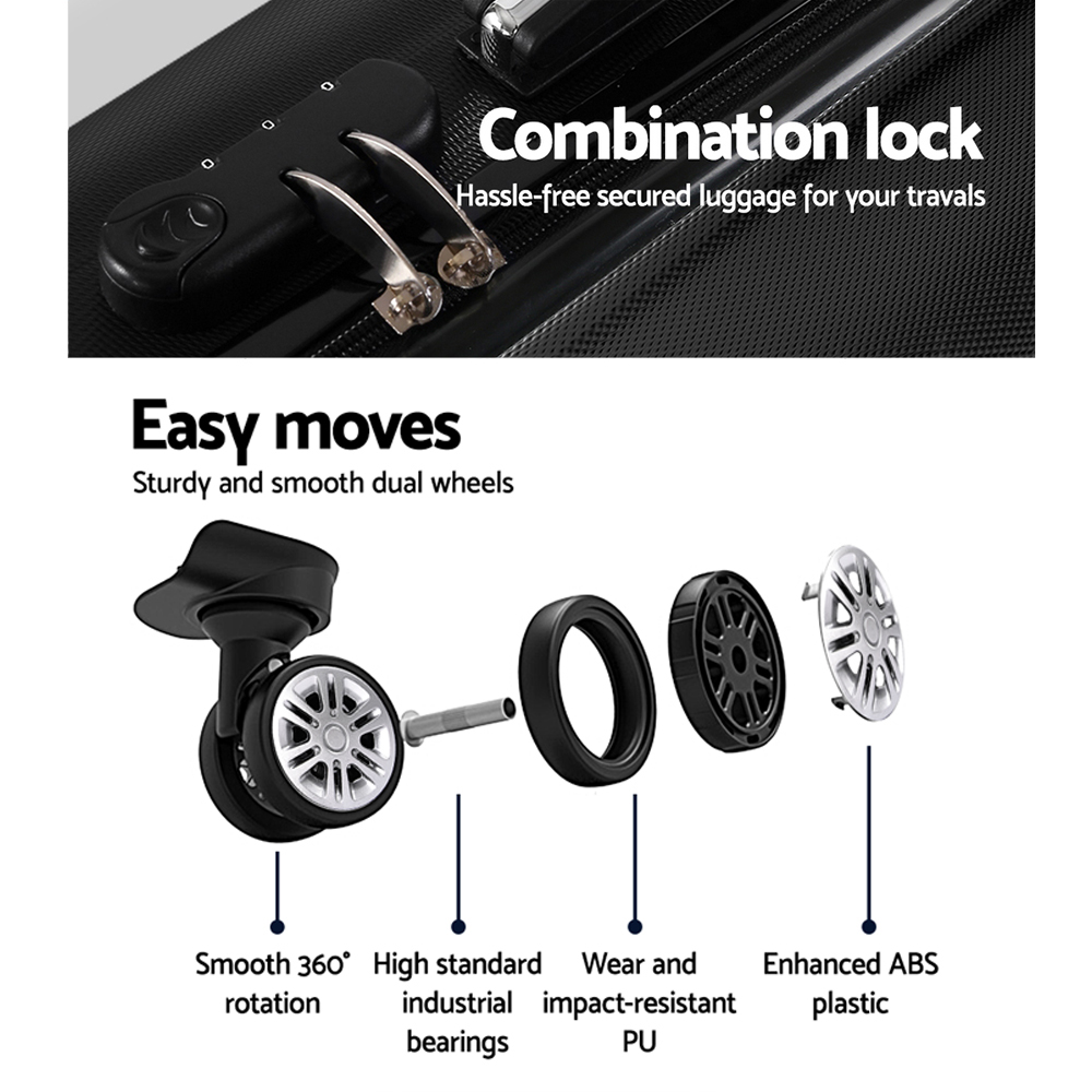 Wanderlite 20 Inch Luggage with Zipper Lock Carry On Hard Shell Travel Suitcase Luggage Case Black