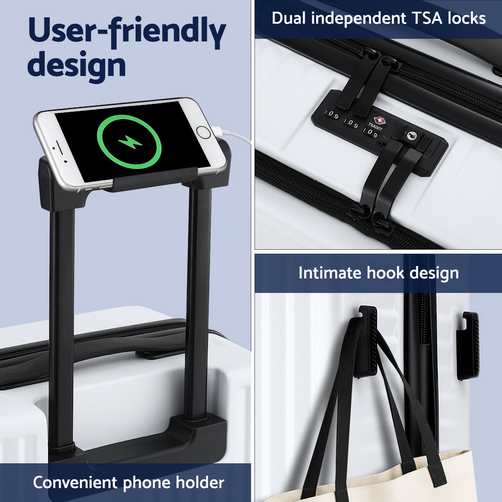 “Smart Hard-Shell Luggage with USB Charging Port & Cup Holder – 24″Spinner Suitcase in White” has been added to your cart. Continue shopping