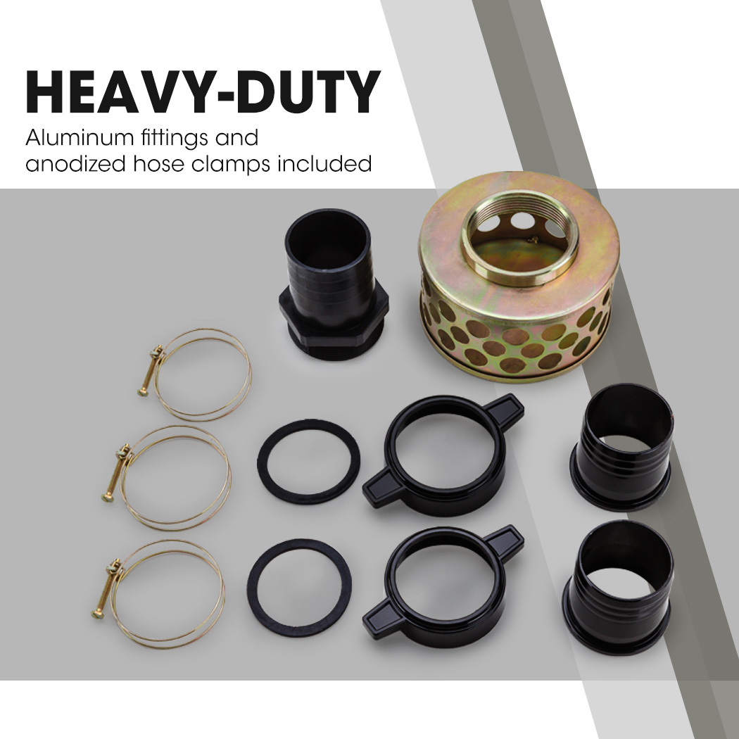 - High-quality aluminium fittings and corrosion-resistant hose clamps
