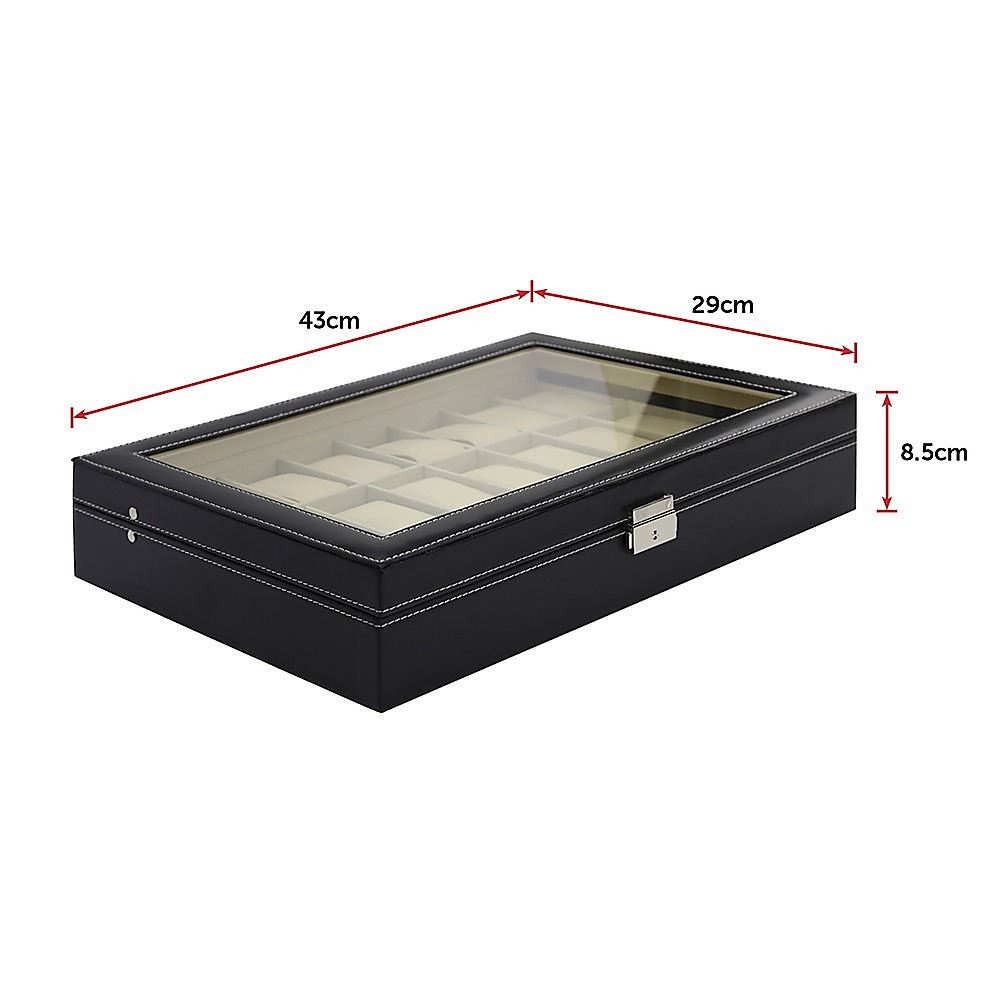 Watch Box – 24 Slot Luxury Display Case With Framed Glass Lid