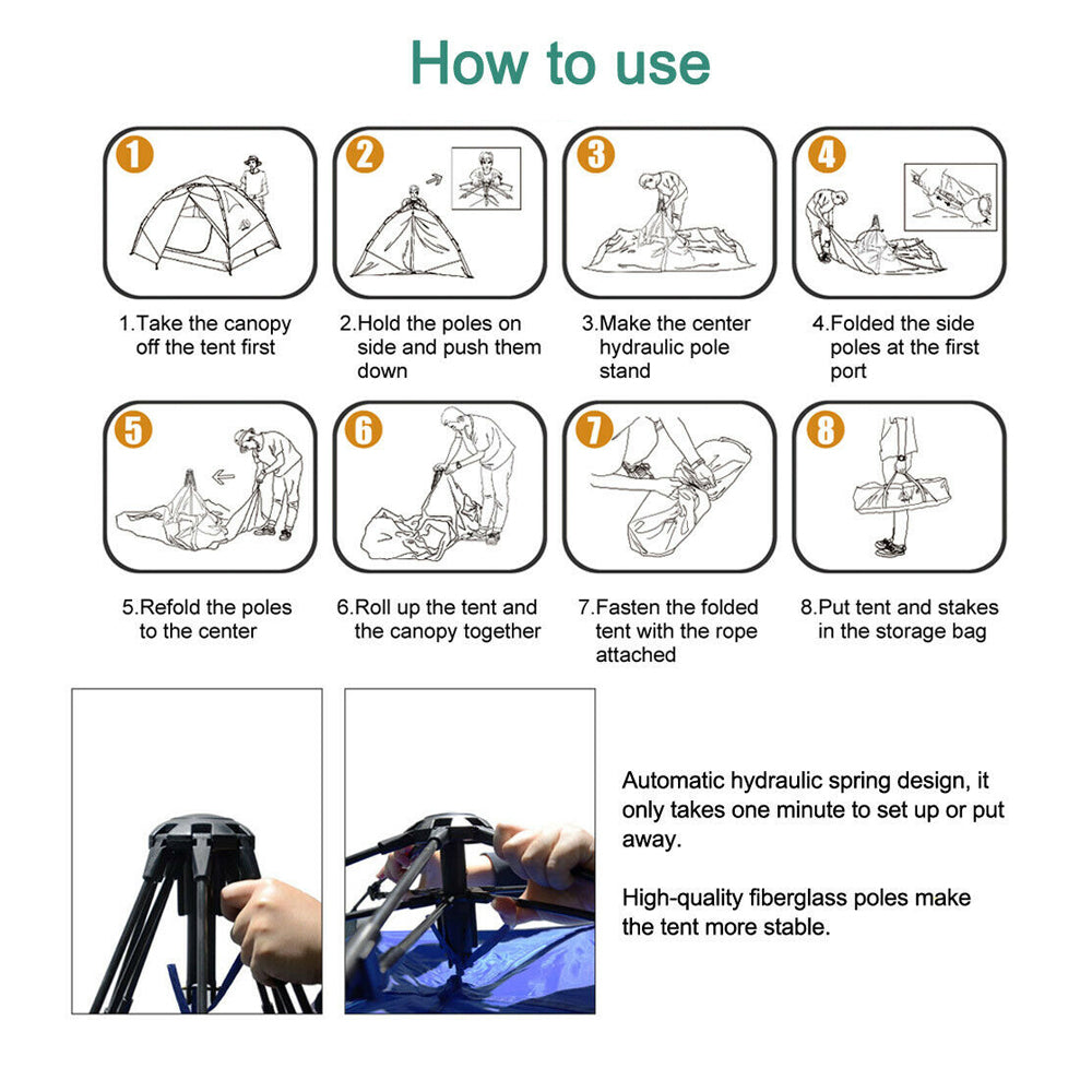 This waterproof automatic camping tent is designed for outdoor enthusiasts seeking convenience and comfort. Suitable for 3-4 persons, it features a moisture-proof pad for a better sleeping experience, making it ideal for family trips or outings with friends.