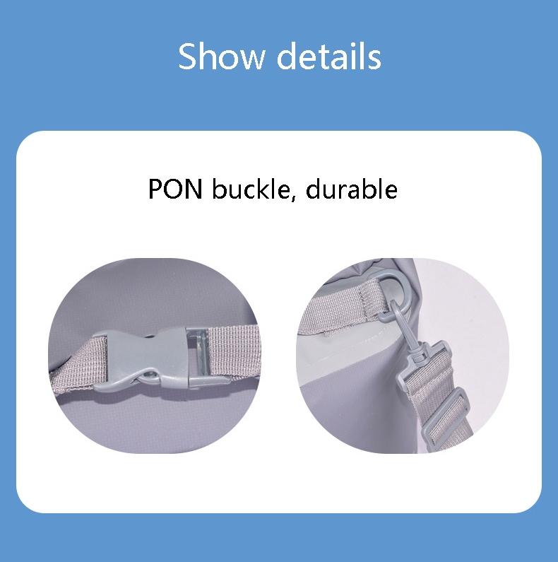 This waterproof beach bag is designed for outdoor activities, providing a durable and waterproof storage solution for seaside, swimming, and rafting adventures. Made from high-quality PVC waterproof fabric, it features a breathable net cloth design and comes in two capacities to suit different needs. The bag is equipped with a sturdy PON buckle, a 360-degree rotating hook, and a thickened roll mouth webbing for secure closure, ensuring reliable performance during outdoor use.