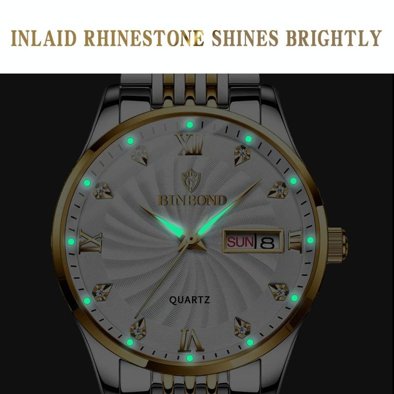Waterproof Business Men Quartz Watch with Butterfly Buckle and Luminous Dial – 30m – Full-Gold-Gold