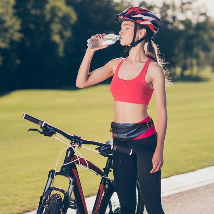 This waterproof crossbody waist bag is designed for running and sports activities. It features a lightweight, light-sensitive fabric with a shiny PU coating, providing effective protection against splashing water and rain. The bag includes a reflective design for enhanced visibility at night and an earphone jack for convenient use. It is comfortable and breathable, making it suitable for active use.