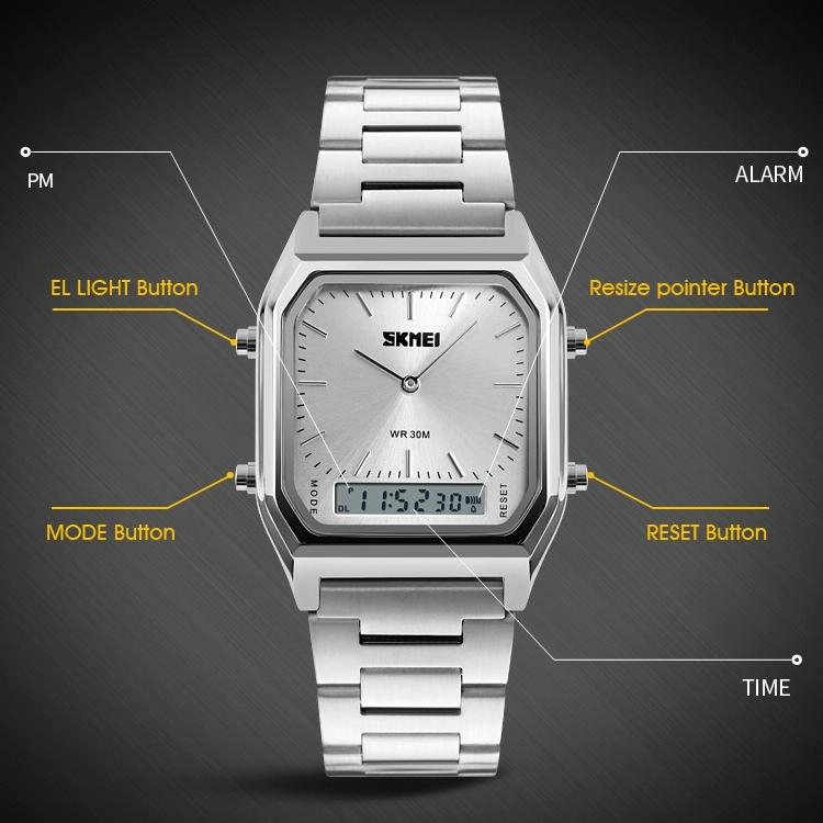 - 1 x Multifunctional men’s outdoor waterproof dual display steel wristwatch
