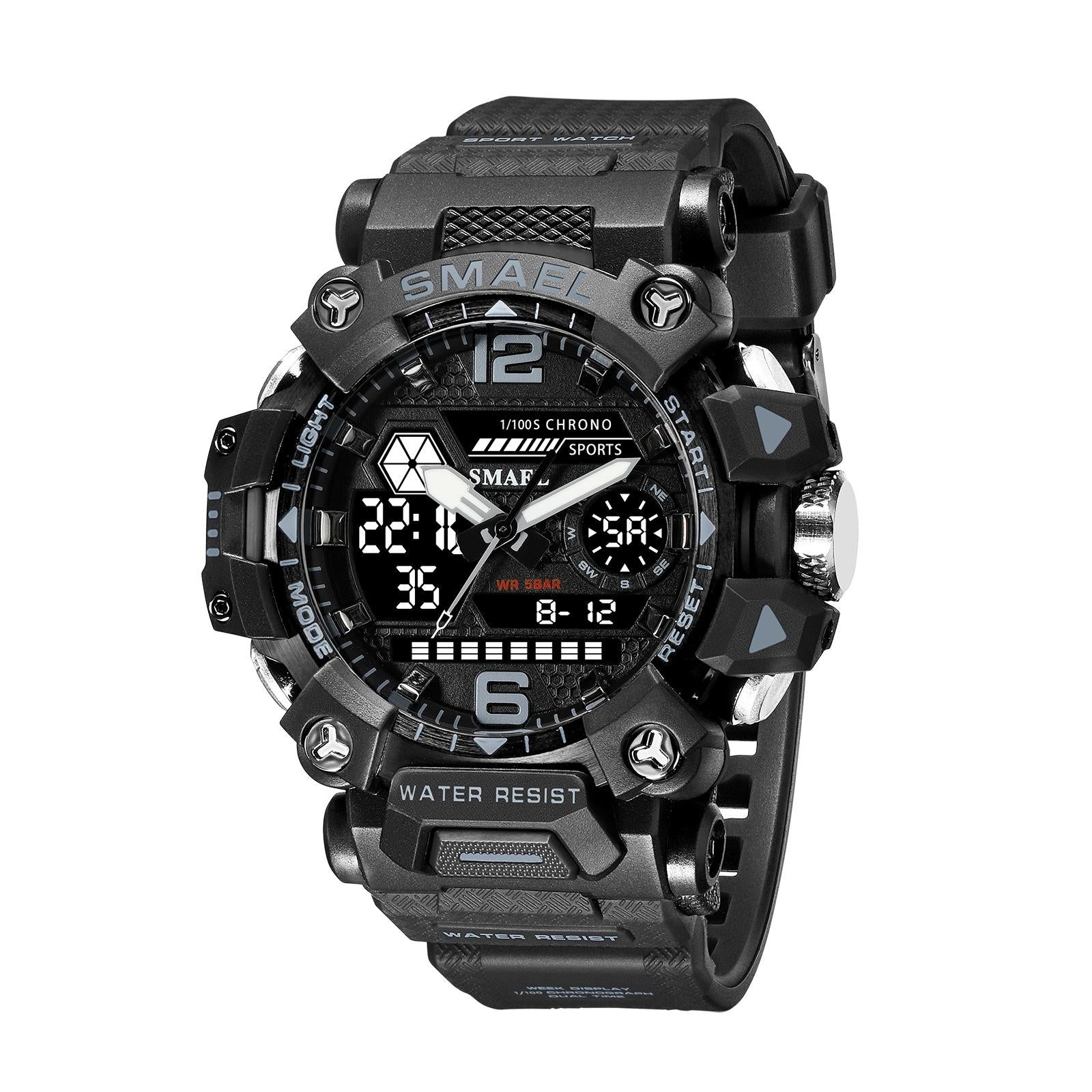 This multifunctional outdoor watch features a durable alloy case and a dual display for easy time reading in various conditions. It combines electronic and quartz movements to ensure accurate timekeeping and offers a range of practical functions suitable for outdoor activities.