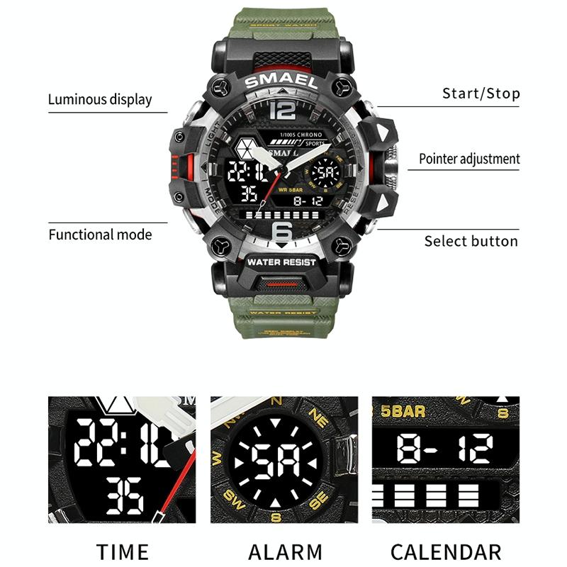 Waterproof Dual Display Outdoor Watch – Multifunctional Alloy for Men – Green