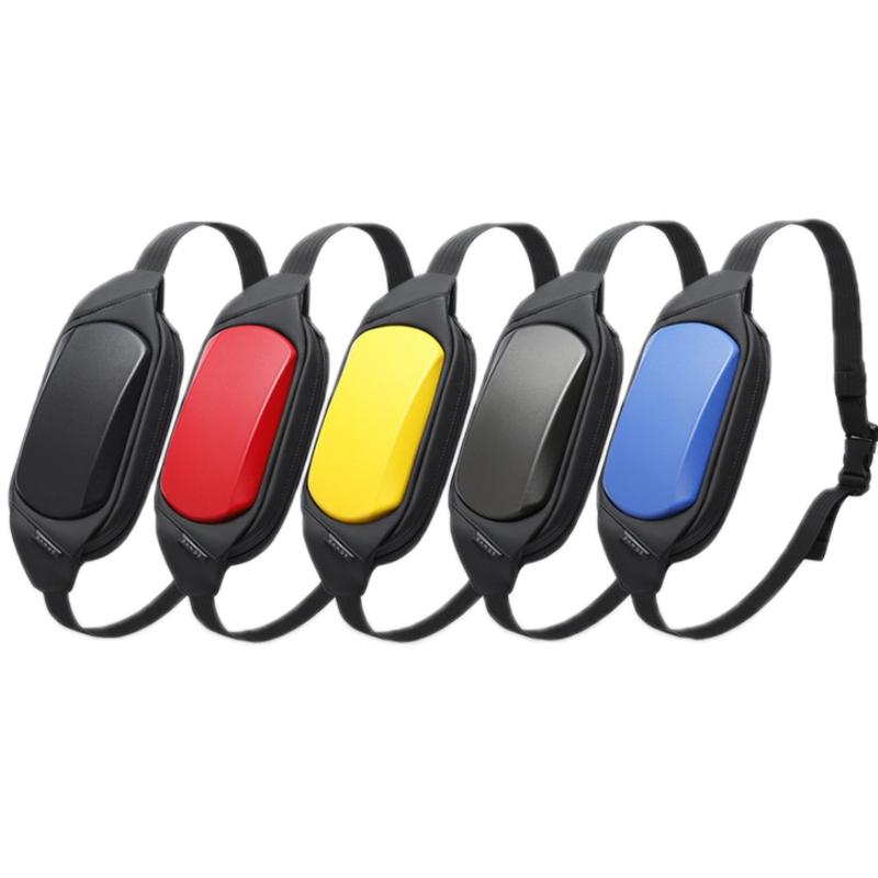 This waterproof Eva crossbody bag features a durable design with a front PC pressure shell and a high-quality leather film material. It offers a practical and stylish solution for carrying essentials securely and comfortably.