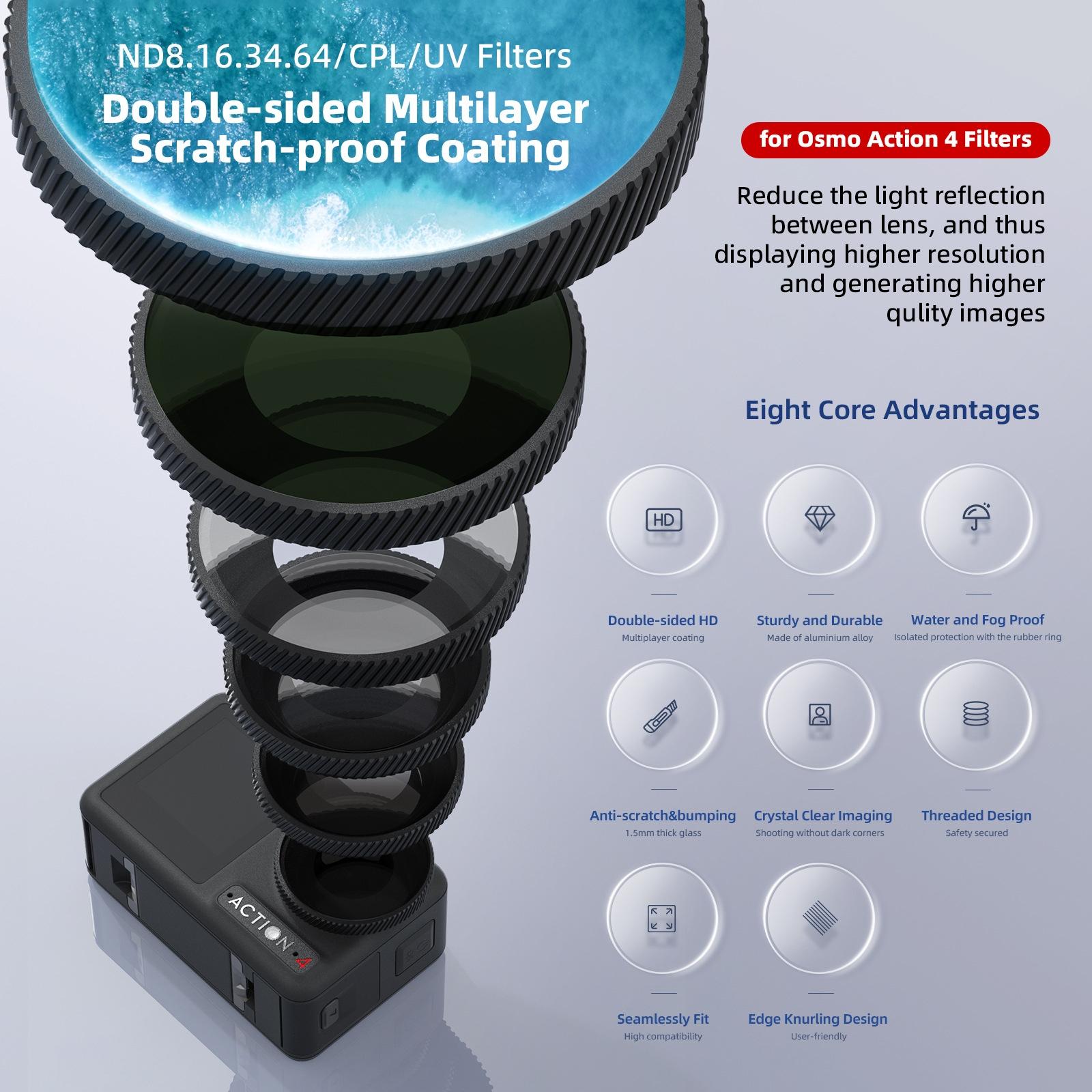 Waterproof Filter for Dji Action 4 Sports Camera - Cpl - Nd8+Nd16+Nd32+Nd64