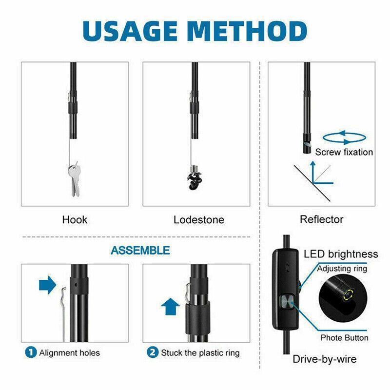 - 3-in-1 endoscope camera with adjustable LED lights for enhanced visibility in dark areas