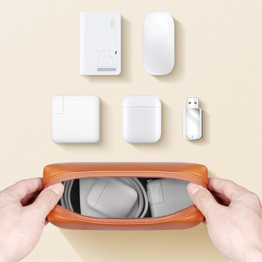 This waterproof laptop accessory bag is made of sheepskin PU leather, offering a waterproof and easy-to-clean surface. It features exquisite workmanship with a smooth zipper for durability. The bag provides a large capacity to store small items such as mice, power banks, chargers, and headphones. It includes a hand rope for easy carrying and has a fashionable, minimalist appearance suitable for business, travel, and school occasions. The size is 19×8.6x7cm, and it weighs approximately 75g. Available in multiple colors including dark blue, dark green, brown, pink, black, and grey.
