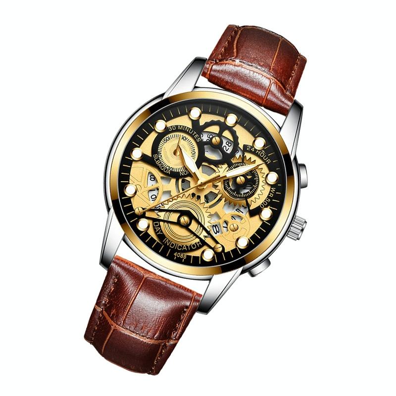 - 1 x men’s hollow quartz waterproof luminous watch
