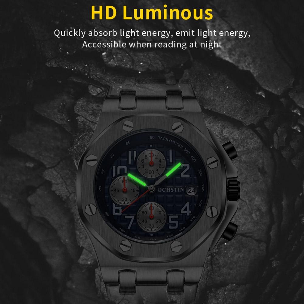 This waterproof luminous men’s watch features a multifunctional quartz movement, a durable alloy case, and a stainless steel strap. It is designed with a textured frame in a classic business style and includes high-definition luminous lighting for easy reading in low light conditions. The watch is suitable for everyday wear and offers reliable performance with its water resistance and stylish appearance.