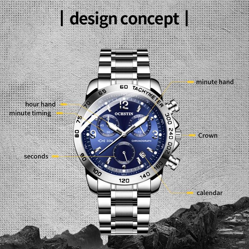 - 1 x Multifunctional quartz waterproof luminous men’s watch with steel strap