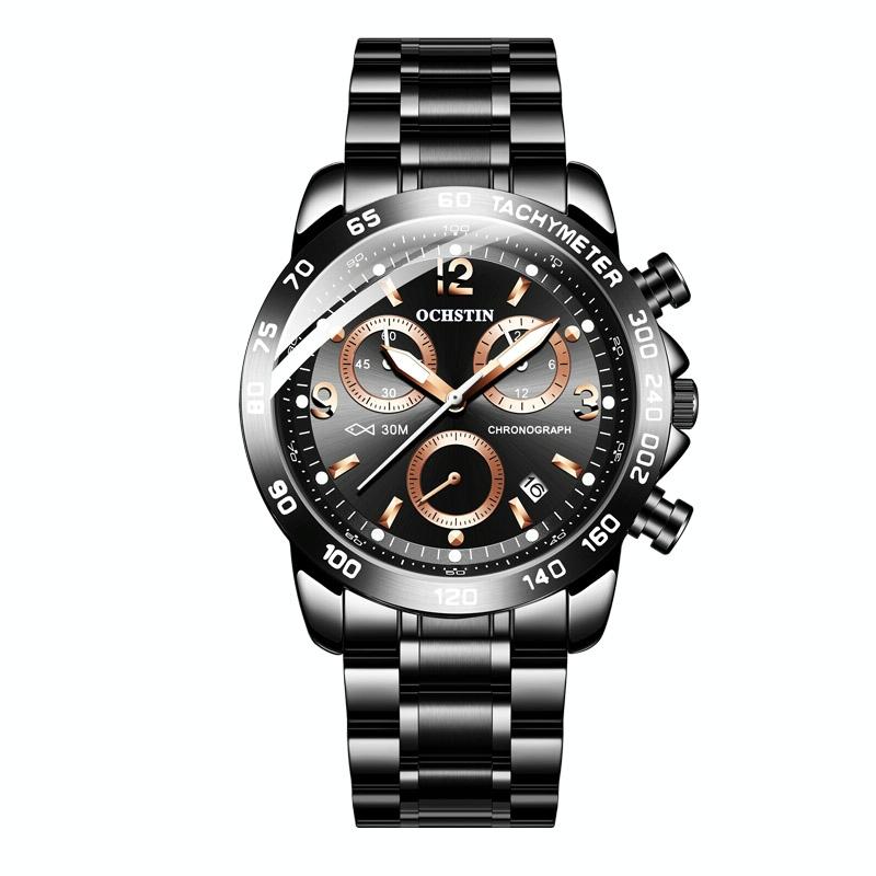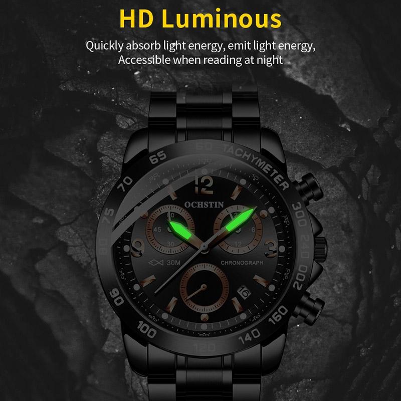 Waterproof Luminous Men Watch with Steel Strap – Black 01