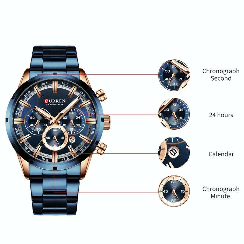 Waterproof Men Business Watch with Quartz Movement and Steel Belt – Rose Shell Blue