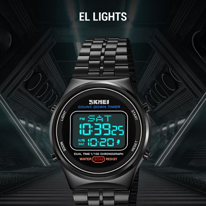 Waterproof Multifunctional Men Digital Watch – Luminous Stainless Steel – 30m – Black