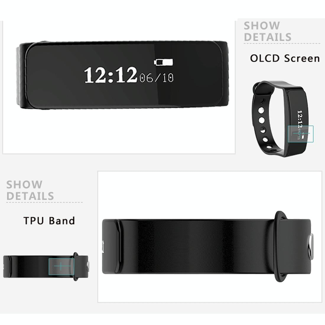 Waterproof Oled Bluetooth Smart Bracelet With Pedometer And Remote Capture For Android / Ios - Black