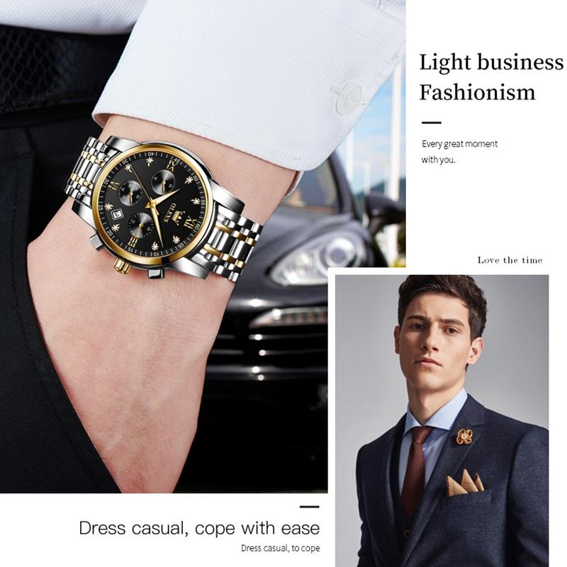 This waterproof quartz watch for men features a multifunctional design suitable for business and everyday wear. It combines a sleek appearance with practical functionalities, making it a reliable accessory for various occasions.