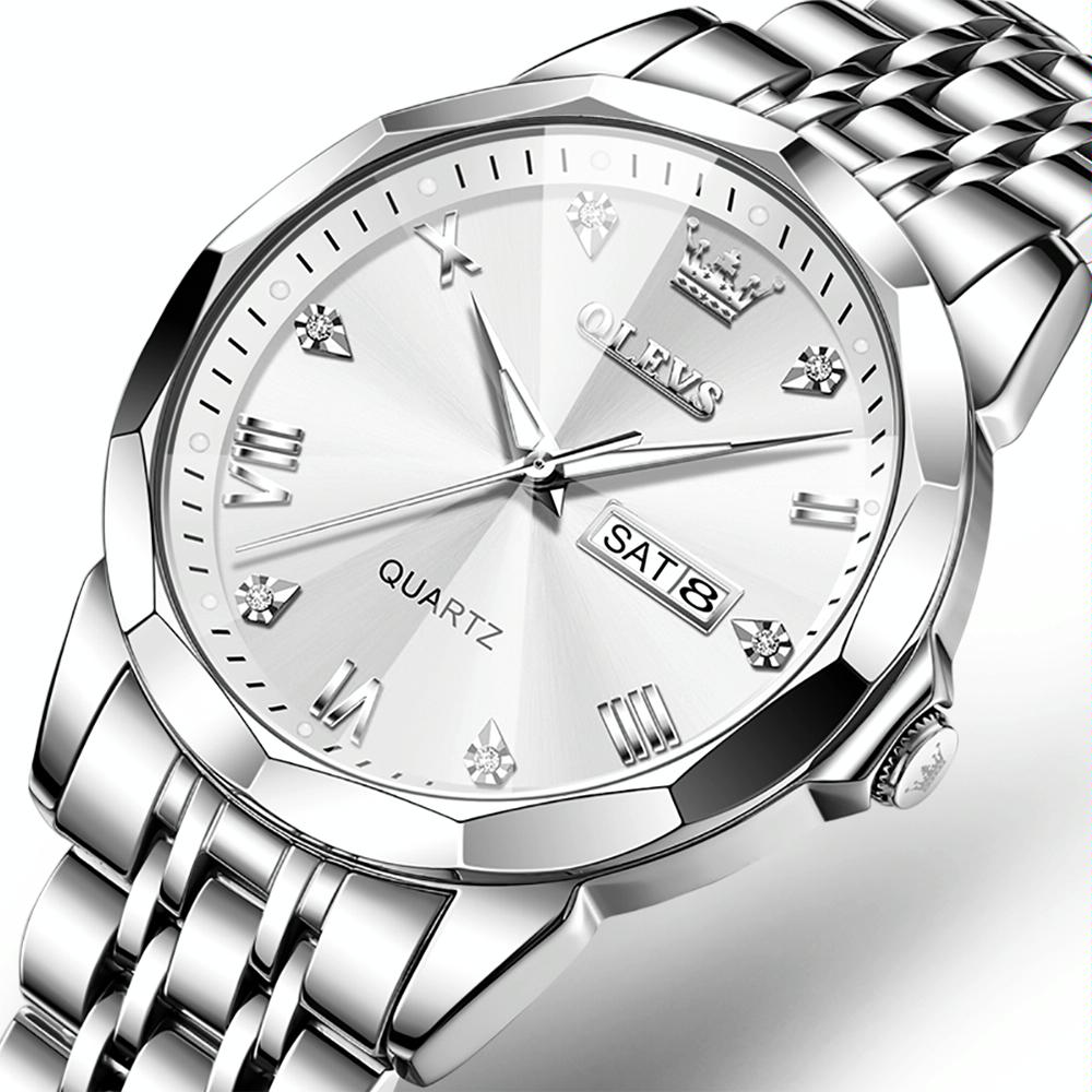 Waterproof Quartz Watch for Men with Luminous Dial – White + Gold