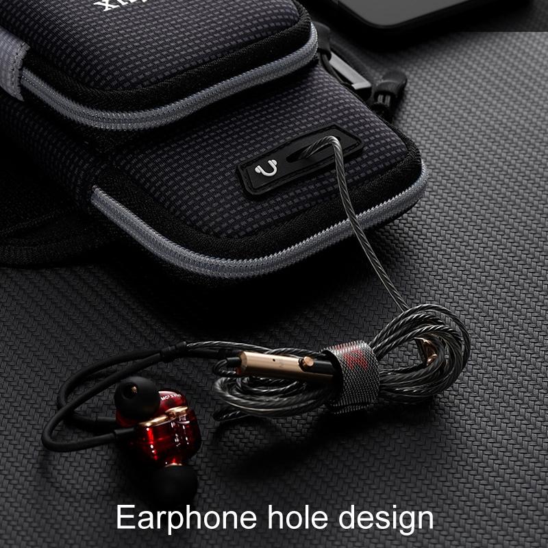 This waterproof running arm bag is designed for outdoor sports, offering a high-capacity, double-layer construction to meet daily needs. It features a headphone hole for listening to music during exercise, an adjustable elastic band to fit arm circumferences from 14 to 38 centimeters, and a durable high-strength buckle. The bag also includes a humanized drawstring for silent running and easy zipper access.