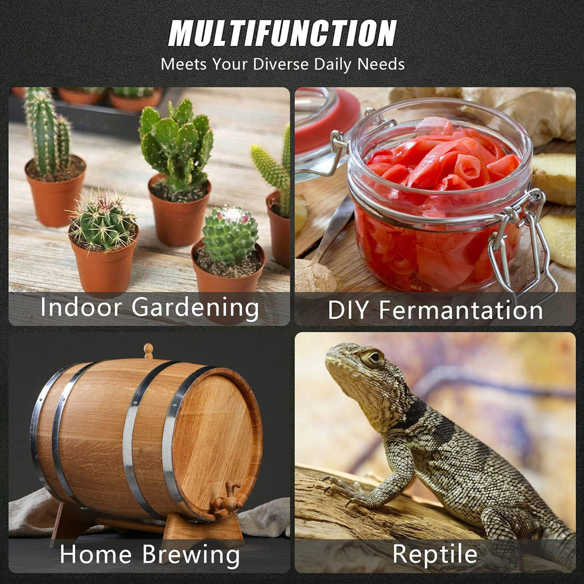 Applications: Seed starting, indoor gardening, home brewing, DIY fermentation, hydroponics, reptile terrariums