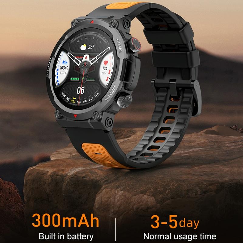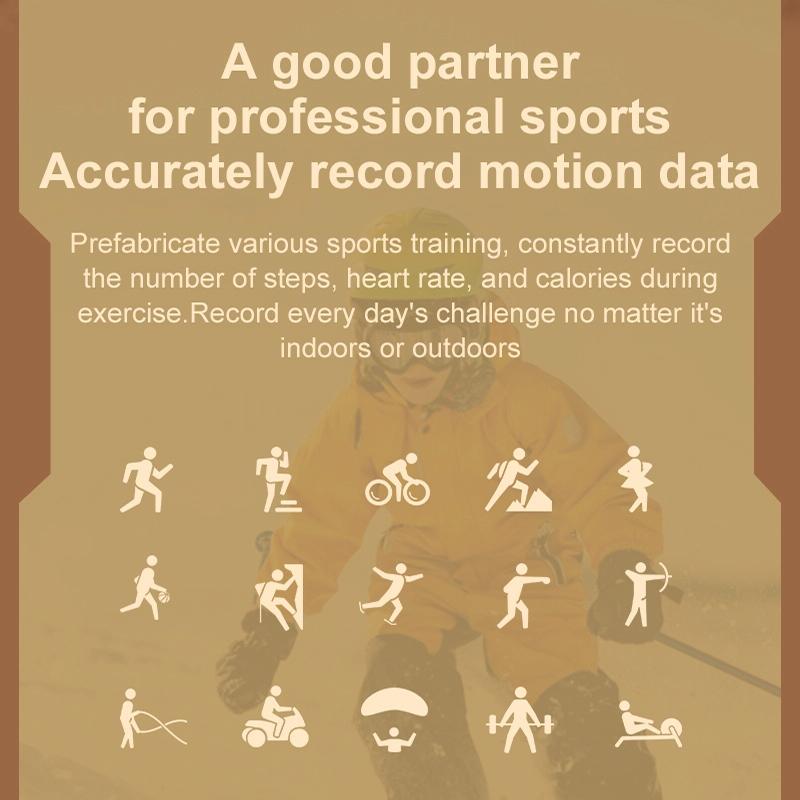 This waterproof smartwatch offers comprehensive health and fitness tracking features, including heart rate monitoring, sleep tracking, blood oxygen saturation, blood pressure measurement, and support for over 100 sports modes. It also provides message notifications, weather updates, and various utility functions, making it a versatile device for daily use and fitness management.
