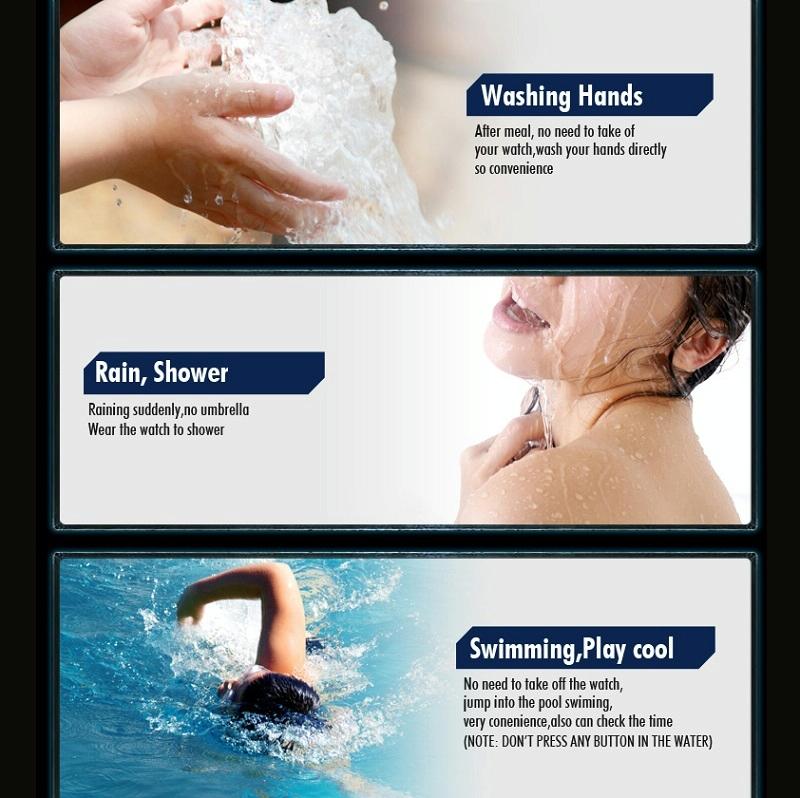 - Electronic watch with glass mirror and stainless steel buckle and strap