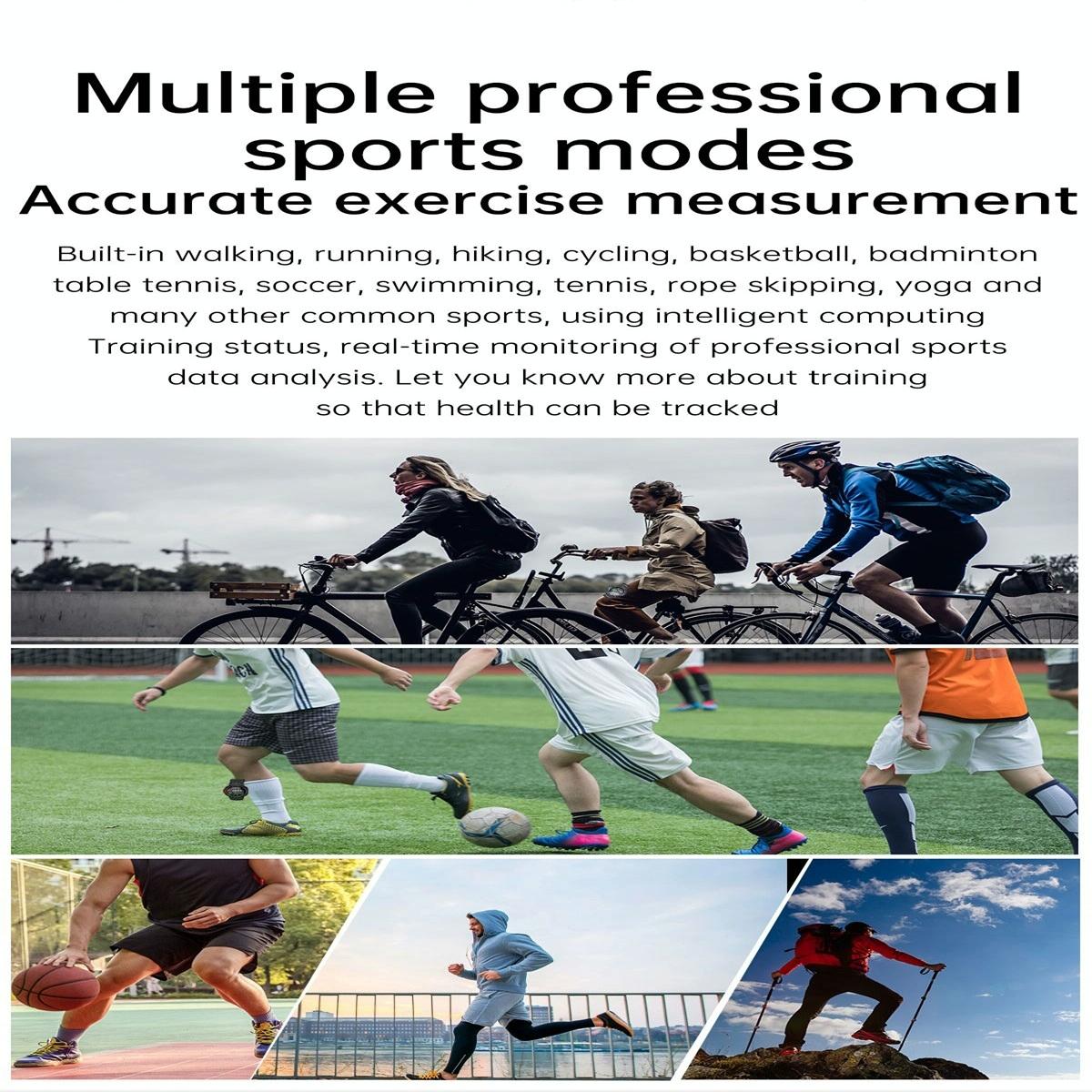 This waterproof steel smartwatch features a color display and comprehensive health and activity tracking functions. It supports Bluetooth calls, heart rate, blood pressure, and blood oxygen monitoring. The device also tracks steps, distance, and calories burned, and offers sleep monitoring including sleep duration and quality. Multiple sport modes are available, such as walking, running, cycling, climbing, basketball, badminton, and swimming. Additionally, it provides social media message reminders, offline payment options, ECG monitoring, SMS notifications, sedentary alerts, calendar access, remote camera control, music management, stopwatch, alarm clock, phone finder, water drinking reminders, and gesture controls.