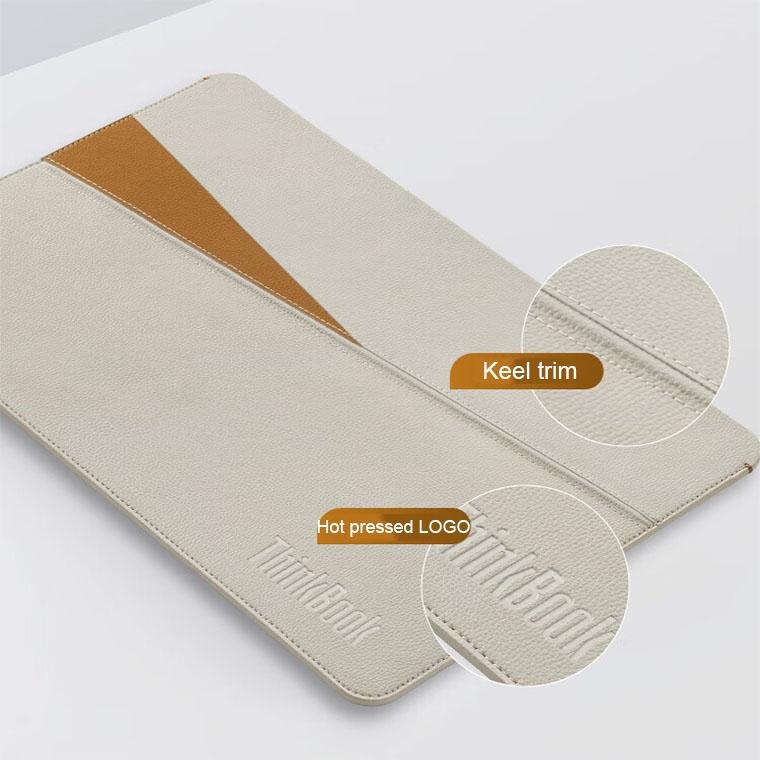 Package includes a waterproof and wear-resistant stitched leather laptop sleeve suitable for 14-inch or smaller devices.
