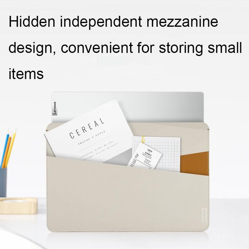 This waterproof leather laptop sleeve offers a durable and stylish solution for protecting your 14-inch or smaller devices. It features a high-quality microfiber inner layer to prevent slipping, a hidden mezzanine for small item storage, and a lightweight design for easy portability. Made from leather and fiber, it provides shock absorption, waterproofing, and large capacity to meet daily needs.