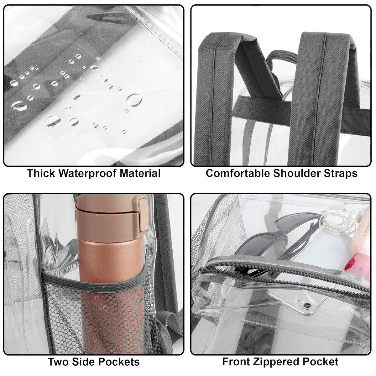 This waterproof transparent backpack combines functionality with modern style, making it suitable for students, commuters, and everyday use. Crafted from durable PVC material, it offers excellent water resistance and ample space for your essentials. The design features multiple compartments and pockets for organized storage, along with reinforced adjustable shoulder straps for comfort during extended wear. Its trendy transparent appearance adds a contemporary touch, perfect for school, travel, and various events.