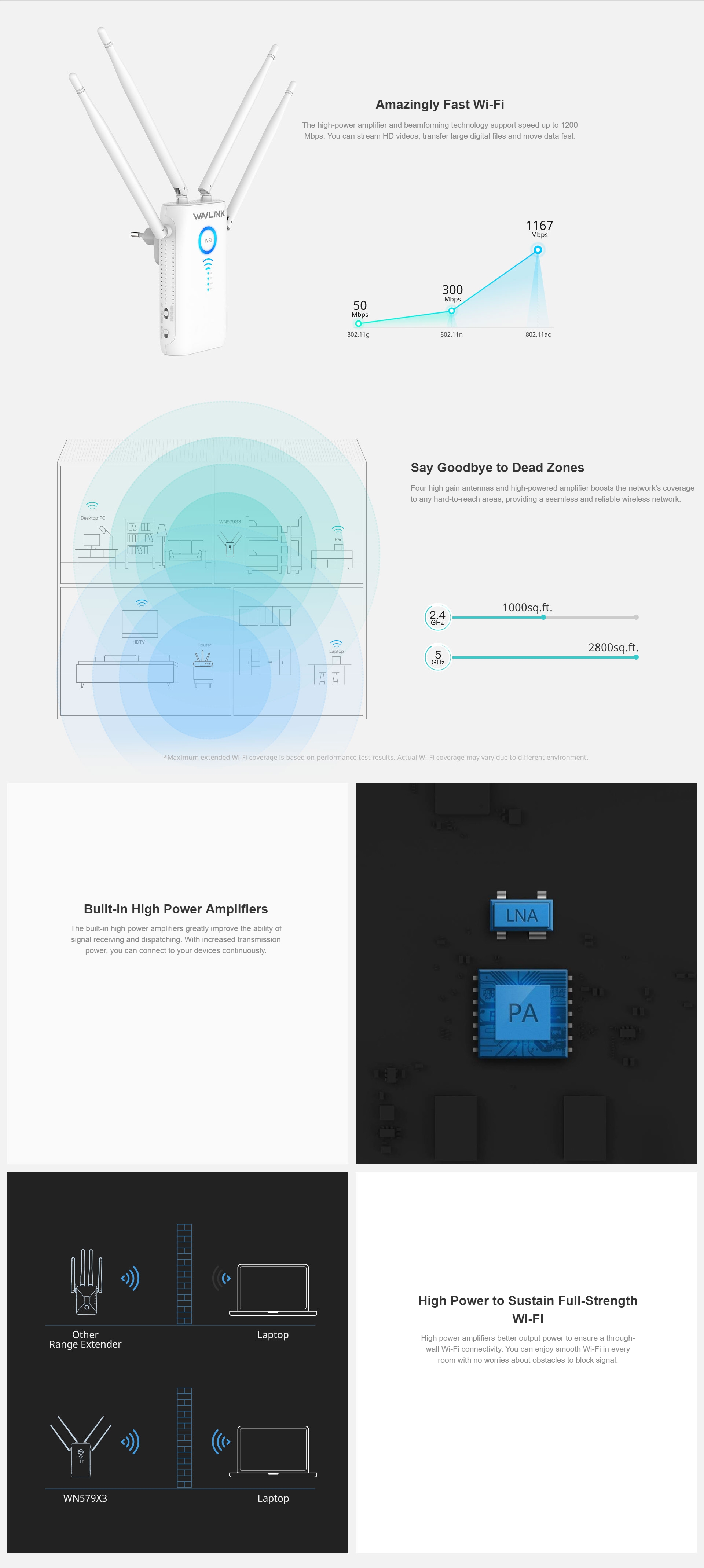 WAVLINK AC1200 Dual Gigabit Ethernet Ports Wi-Fi Range Extender (WL-WN579G3)