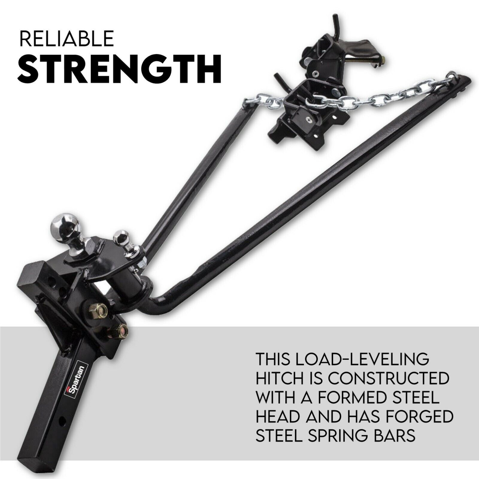 This weight distribution hitch system is designed to improve towing stability by reducing trailer sway and ensuring balanced weight distribution between the towing vehicle and trailer. It helps restore steering, braking efficiency, and suspension geometry for a smoother towing experience.