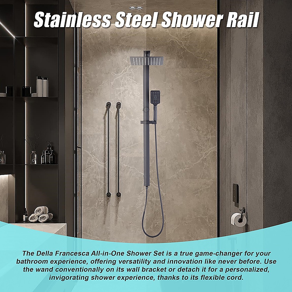 WELS 10″ Rain Shower Head Set Square Dual Heads High Pressure with Handheld in Black