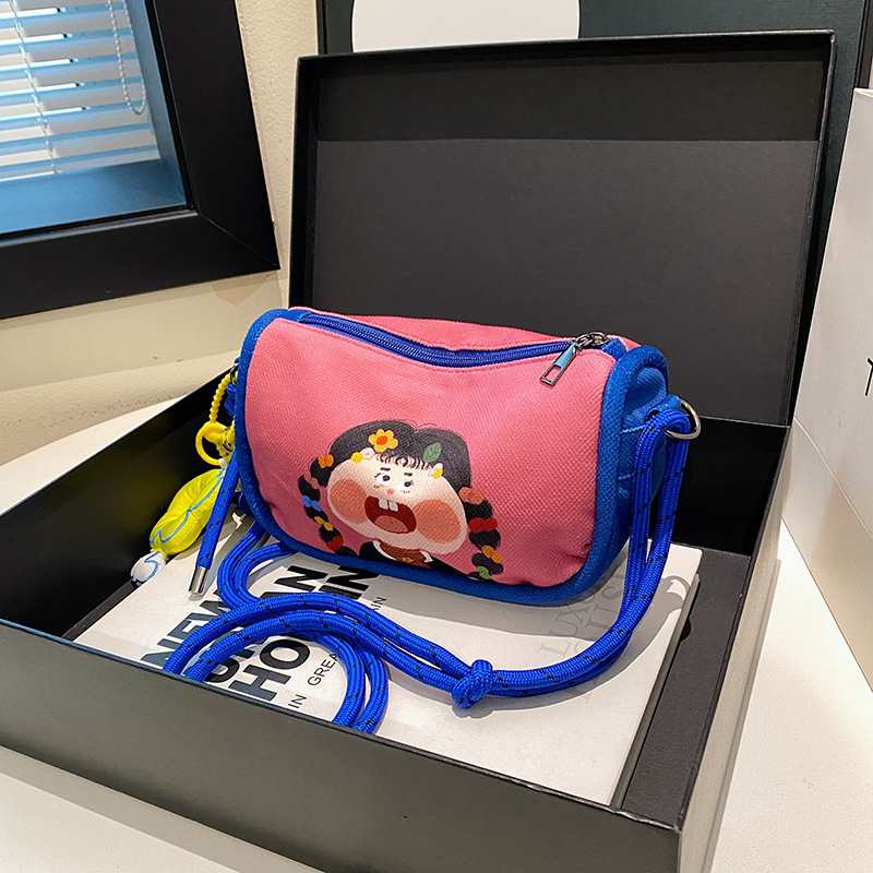 This whimsical cartoon girl crossbody bag adds a playful touch to your daily accessories. Made from lightweight durable canvas, it features a vibrant cartoon girl print and a charming flower charm. The adjustable rope strap allows for comfortable shoulder or crossbody wear, making it a practical and stylish choice for casual occasions.