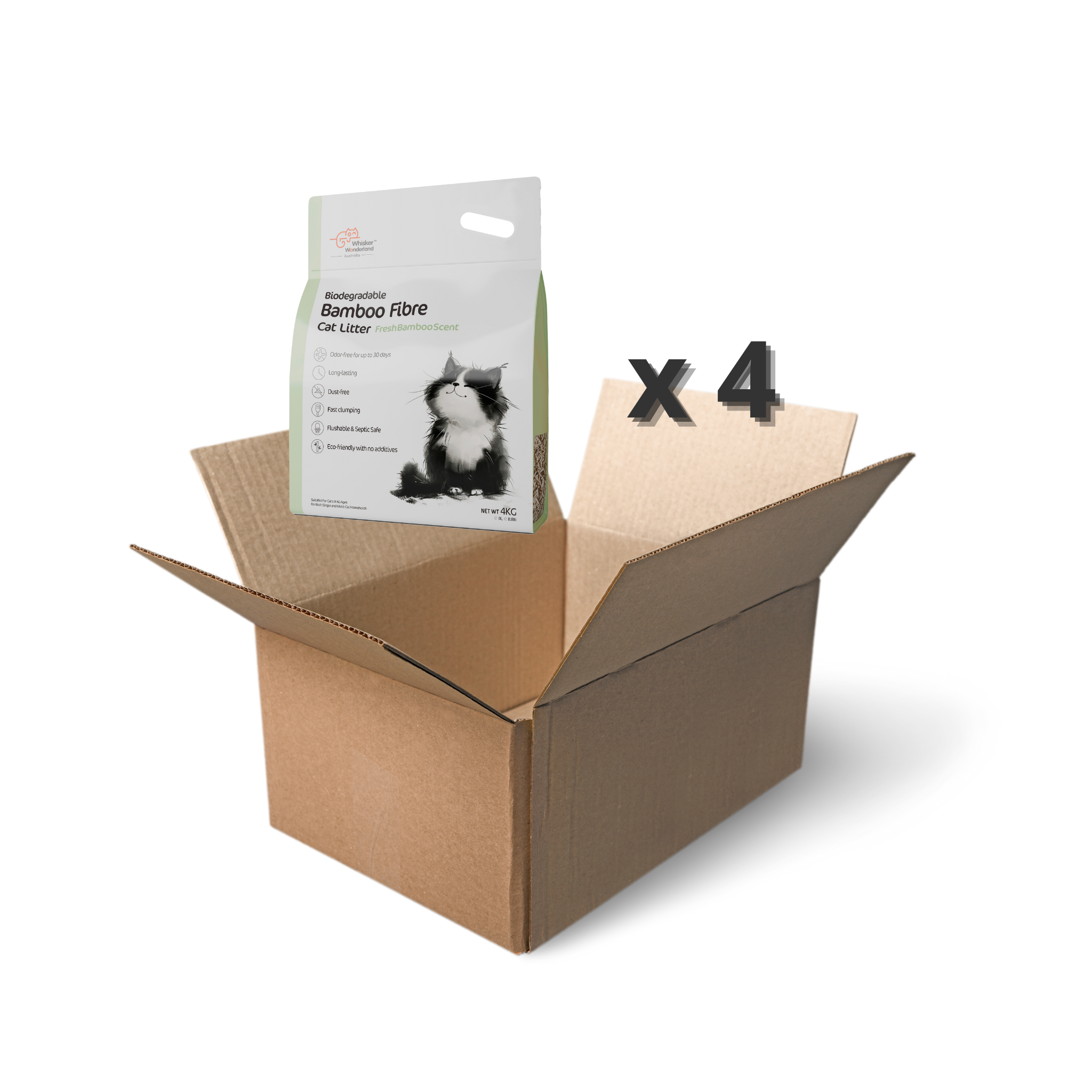 Whisker Wonderland Bulk Biodegradable Bamboo Fibre Cat Litter 4KG – Full Box (Save More!) | Superior Odour Control, Fast Clumping & Flushable | Eco-Friendly Value Pack