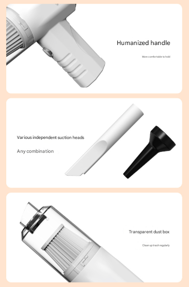 This portable and lightweight 2-in-1 cordless handheld vacuum and air blower is designed for effortless cleaning in various environments. It combines powerful suction with a focused air blower, making it suitable for cleaning cars, homes, and offices. Its compact size and dual functionality provide a versatile solution for removing dirt, debris, pet hair, and dust from hard-to-reach areas.