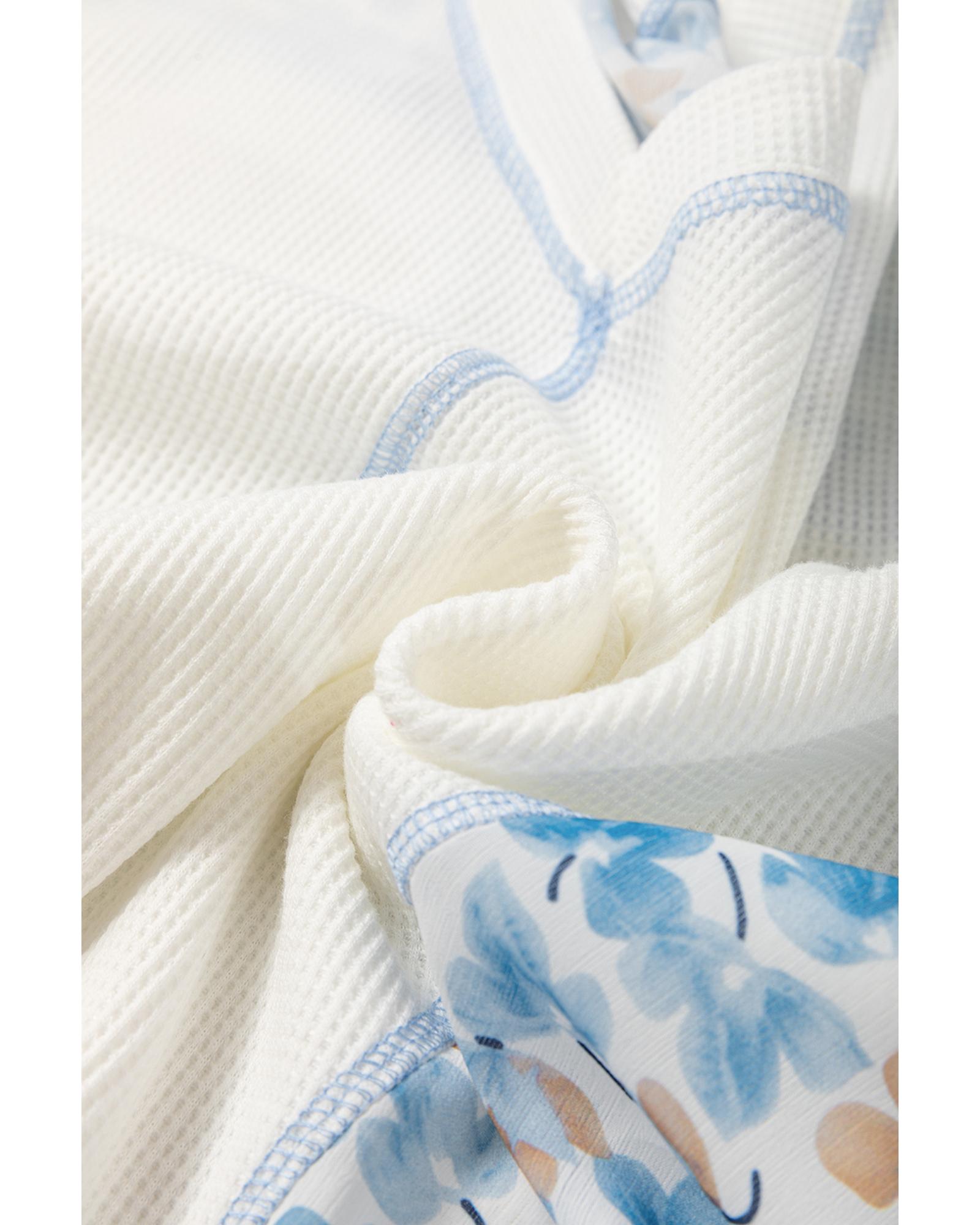 White Abstract Floral Patchwork Batwing Sleeve V Neck Blouse – S