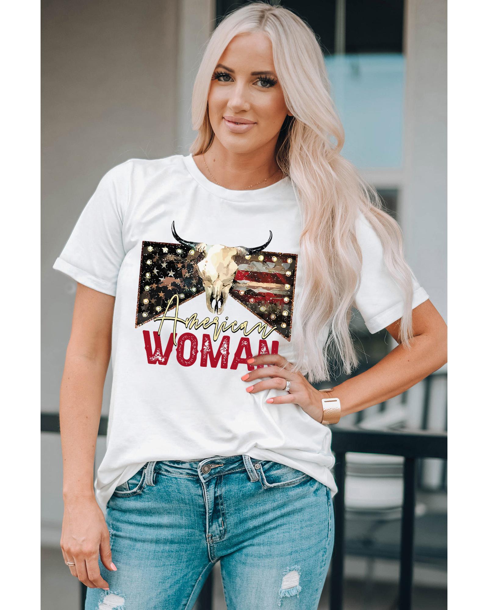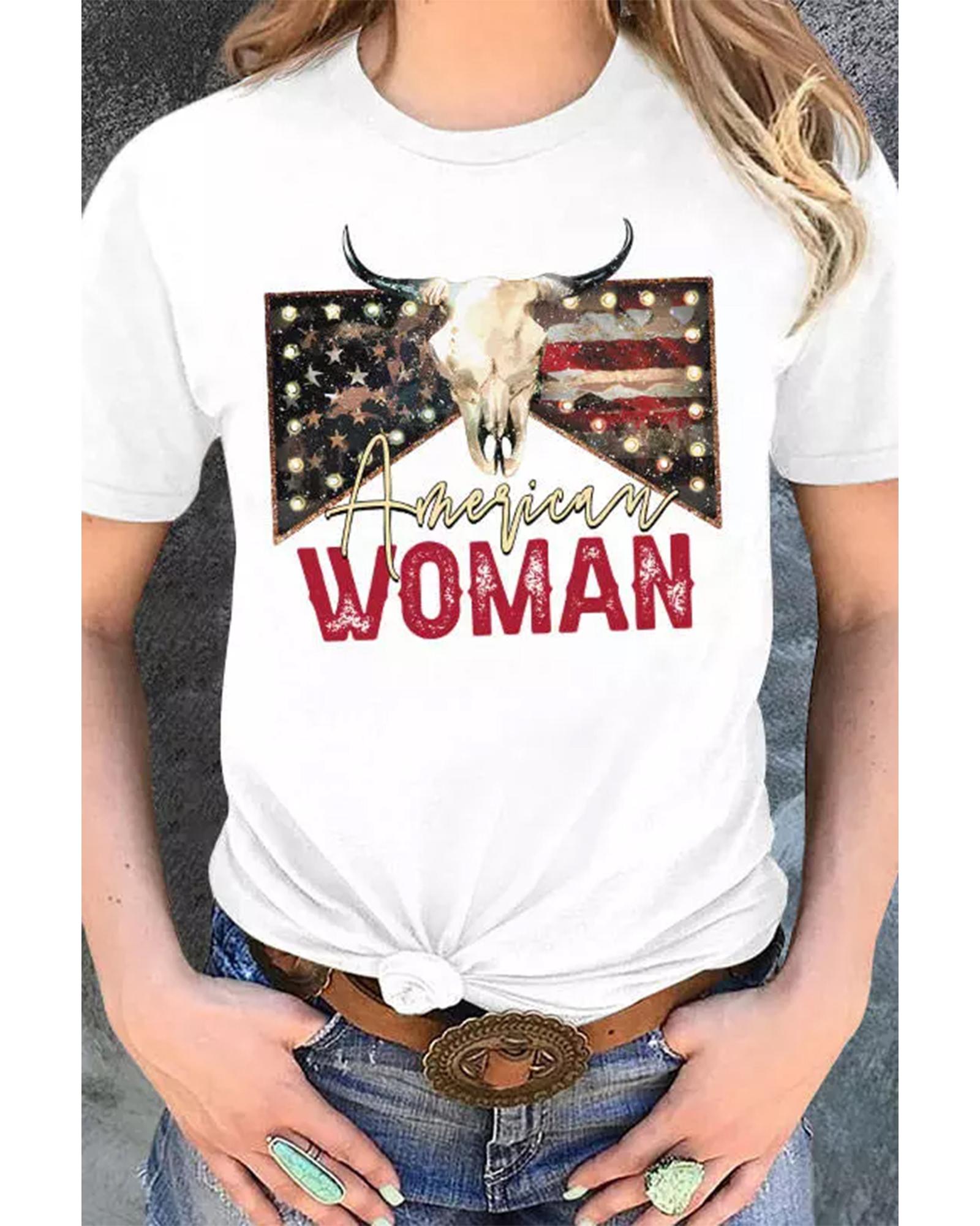 White American Woman Bull Skull Graphic T Shirt – 2XL