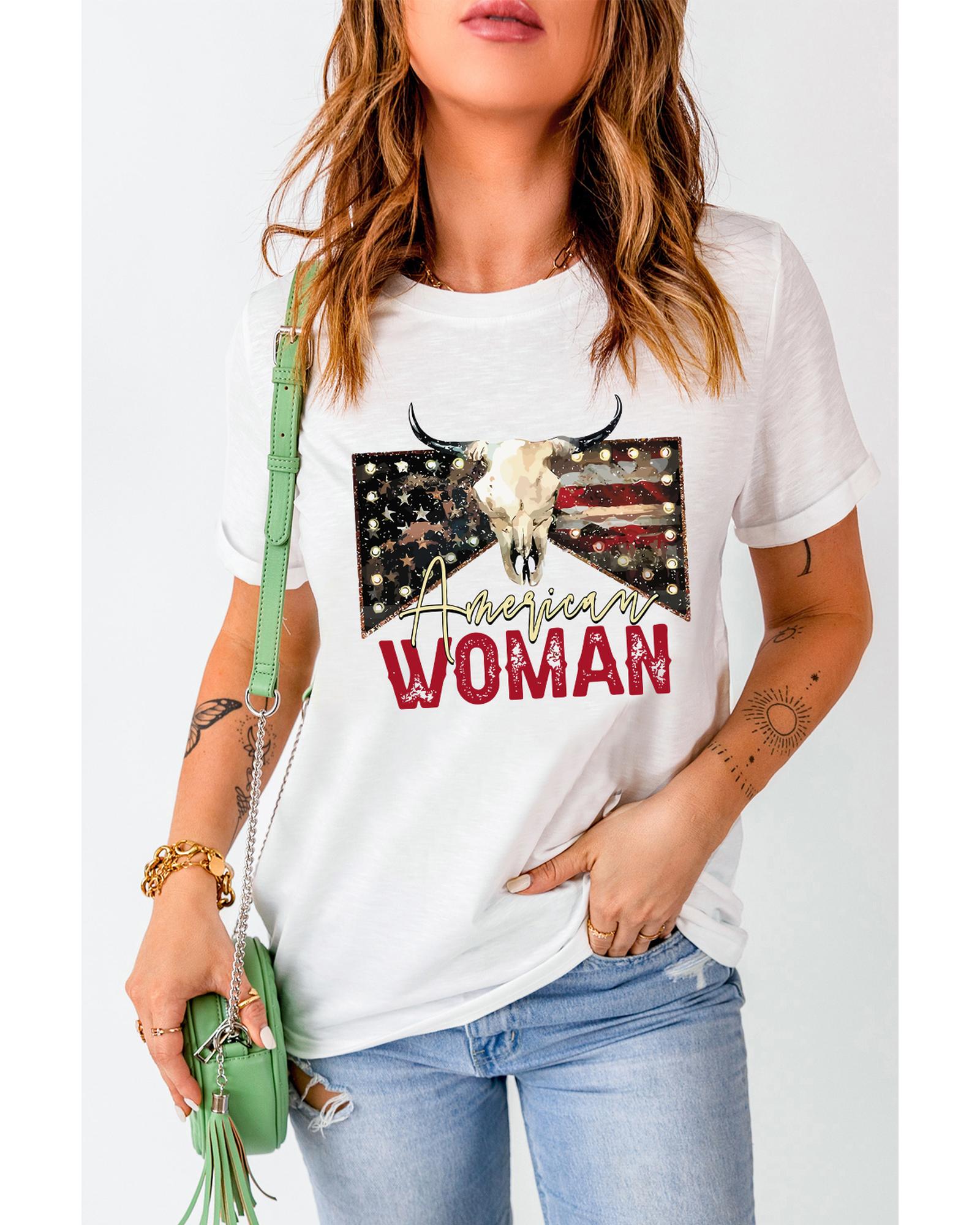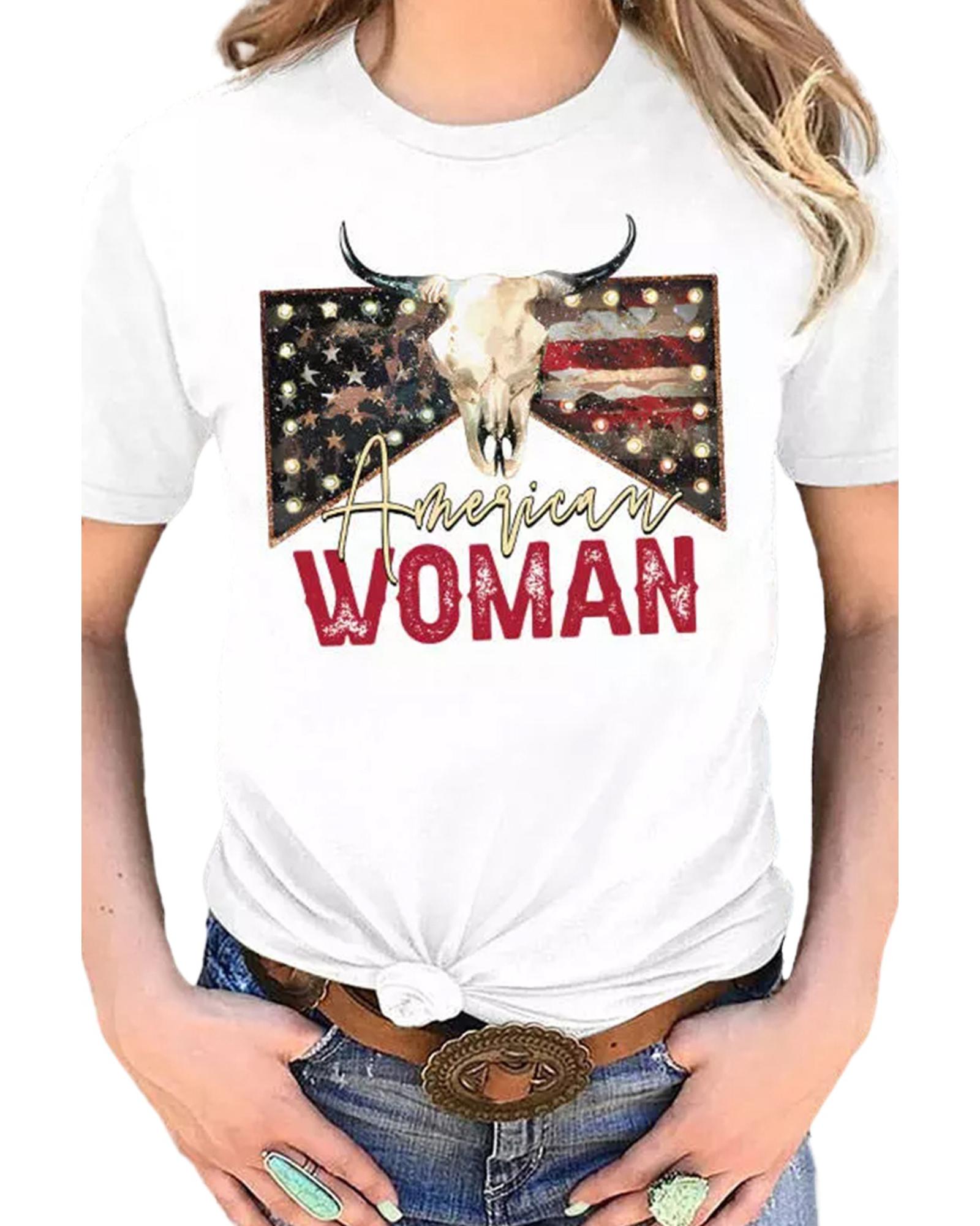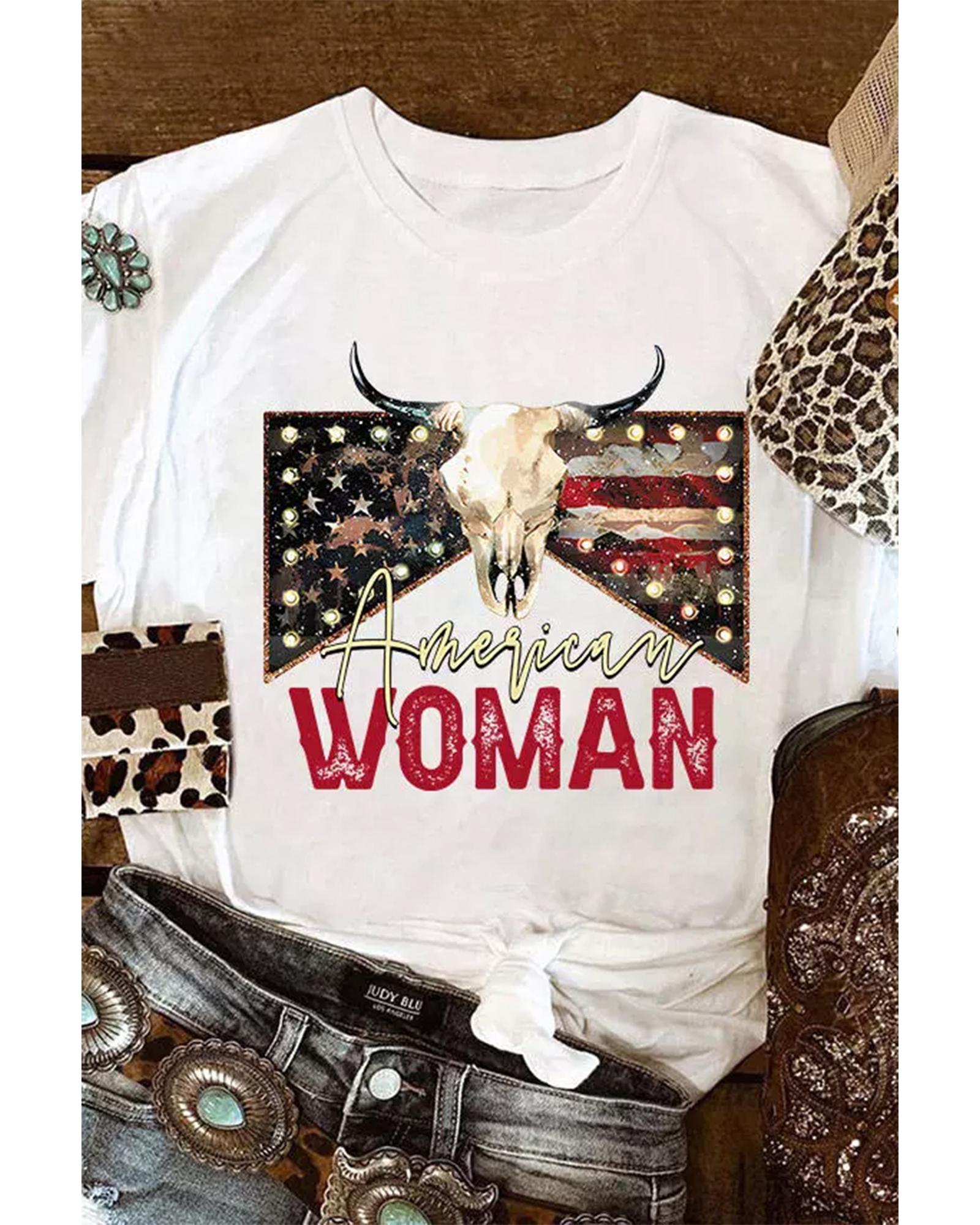 White American Woman Bull Skull Graphic T Shirt – M