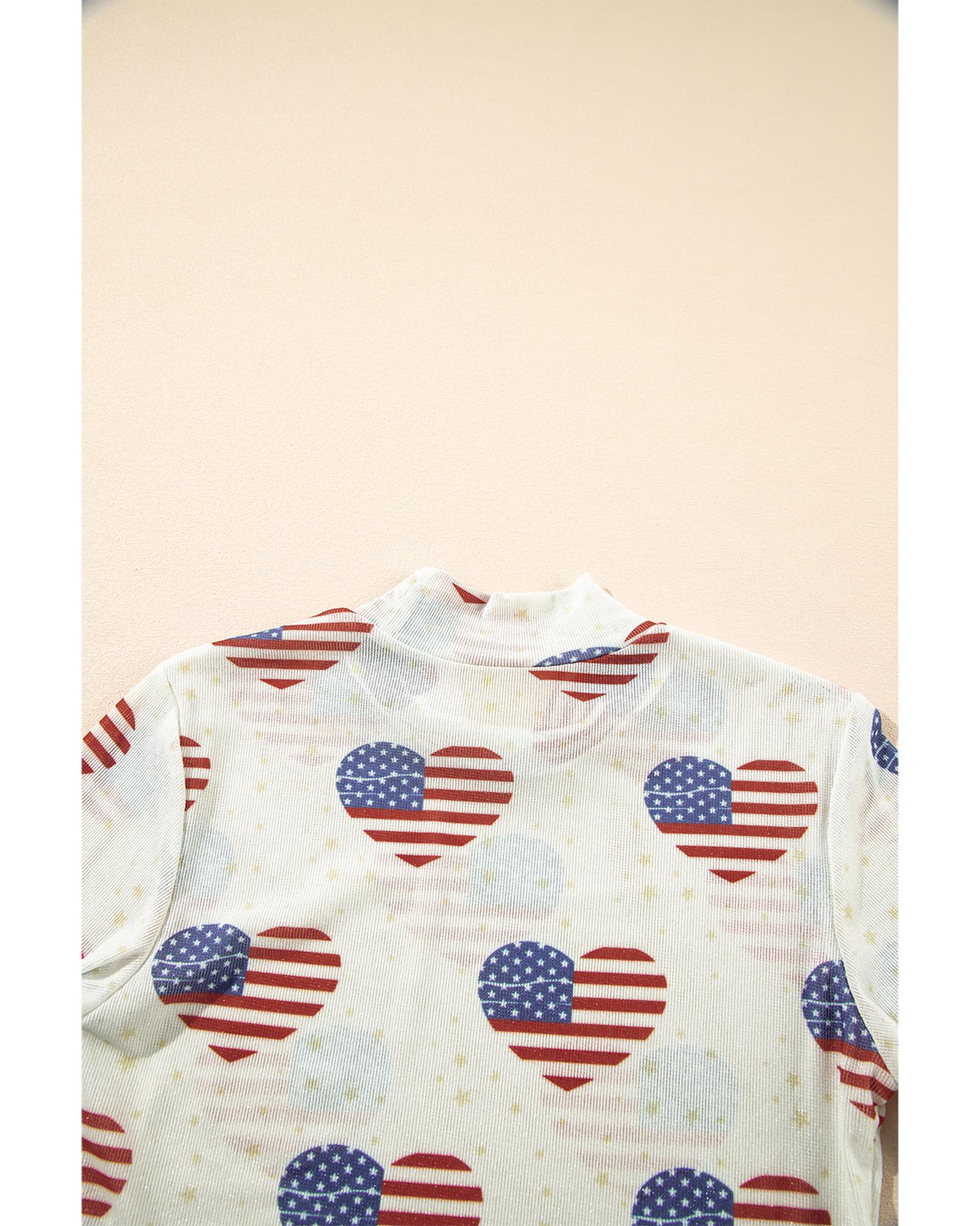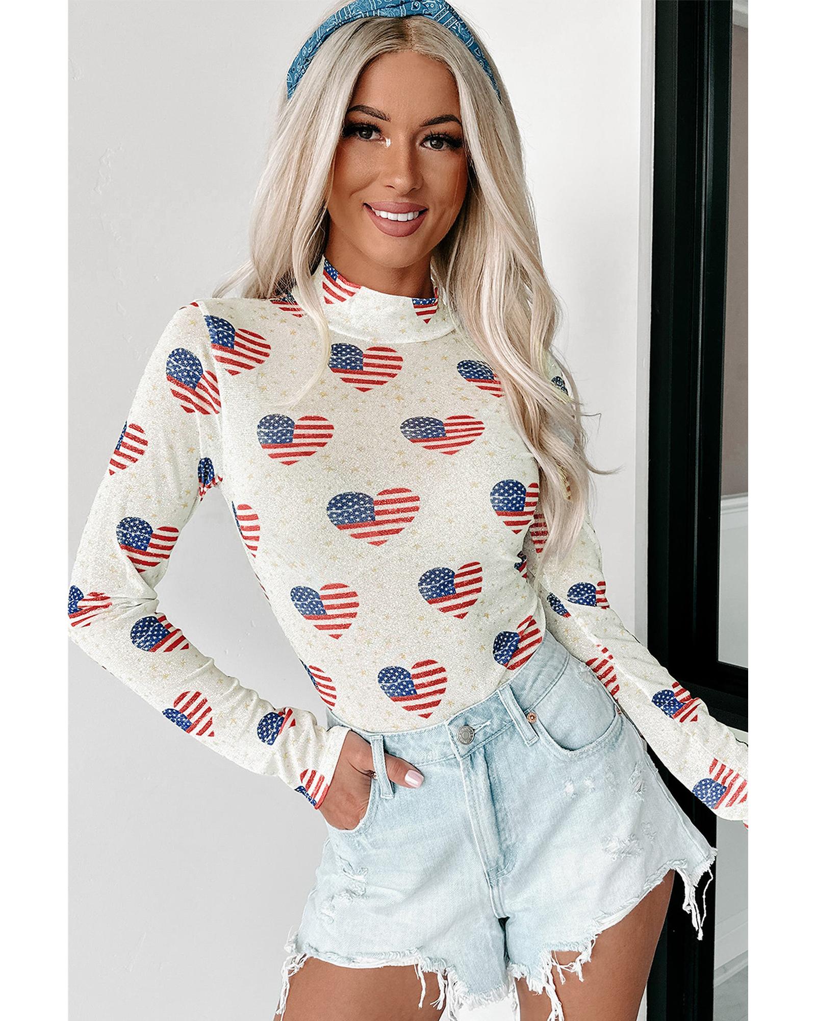 White Americana Glitter Mesh Long Sleeve Bodysuit – M